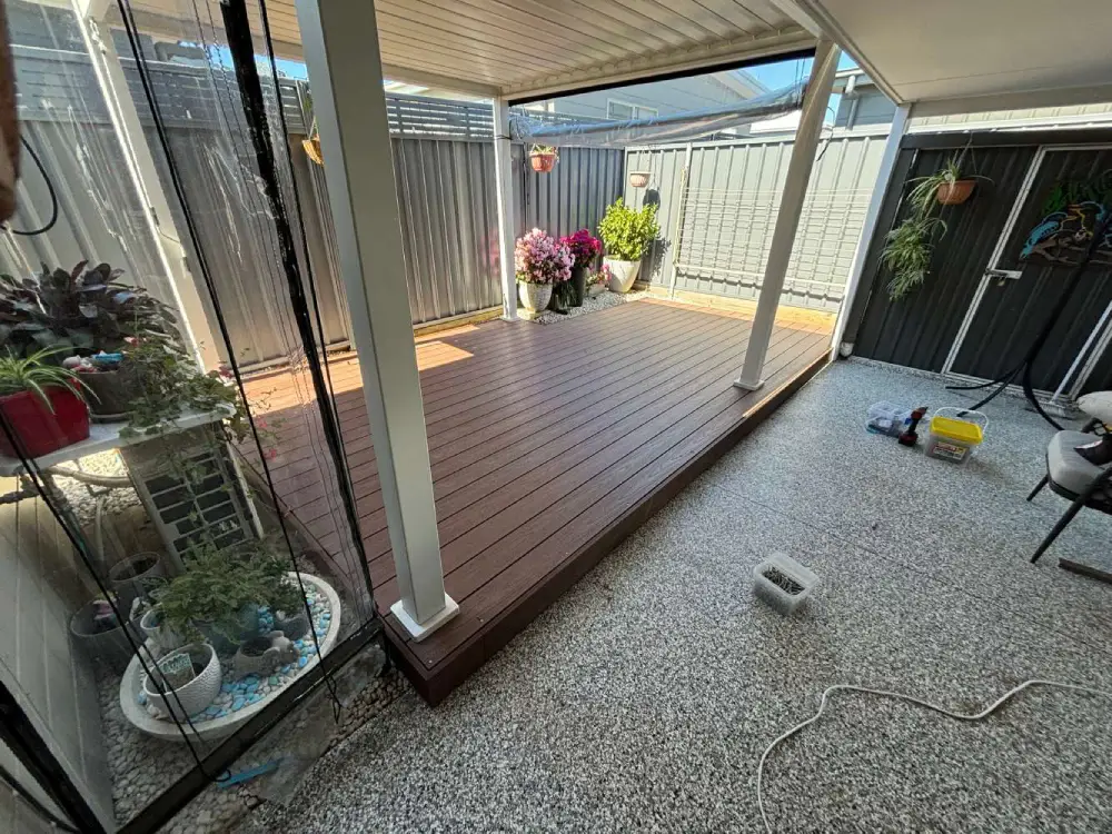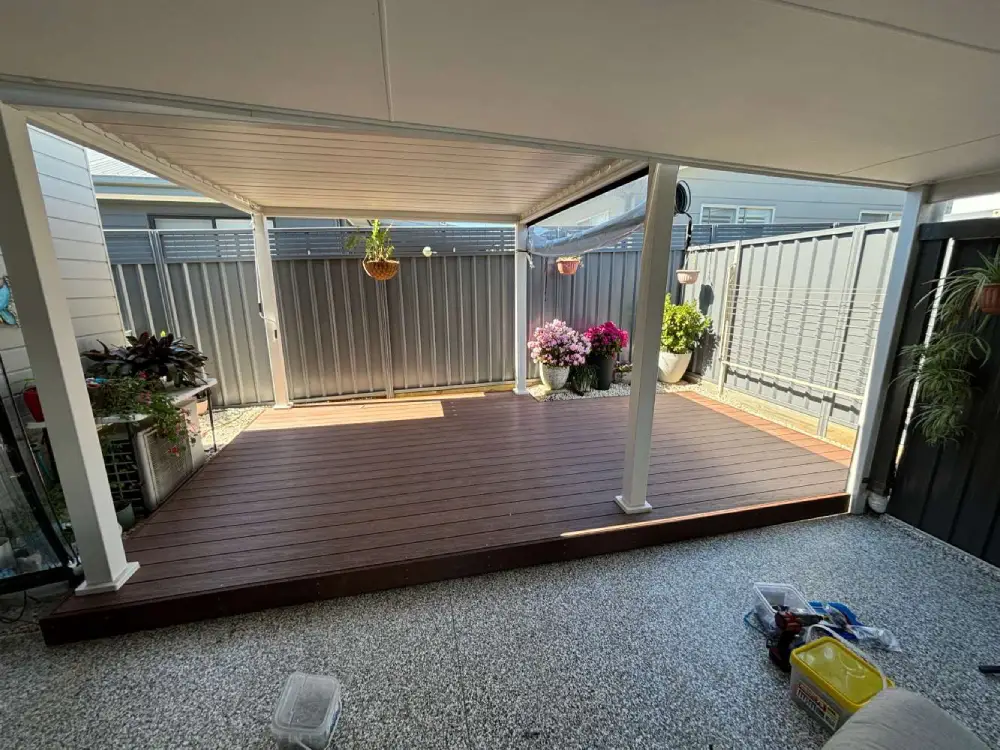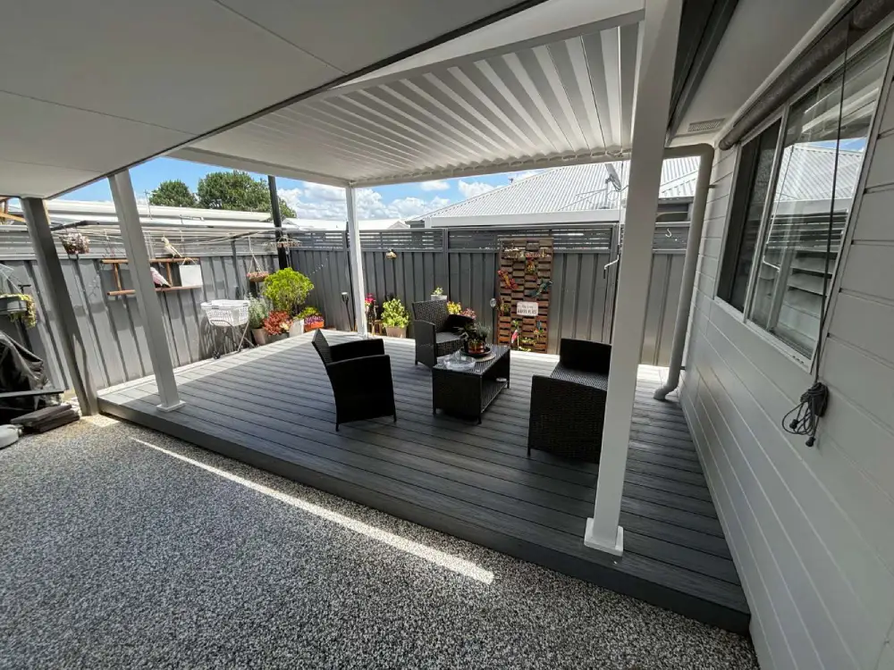New Composite deck in Tomago, clad with Ekodeck Composite decking and completed with a new louvered pergola